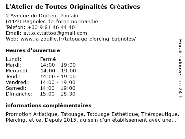 | Termes de recherche pour L'Atelier de Toutes Originalités Créatives:de, l'atelier, toutes, créatives, originalités |