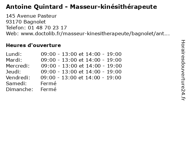 | Lundi | 09:00-13:00 et 14:00-19:00 |