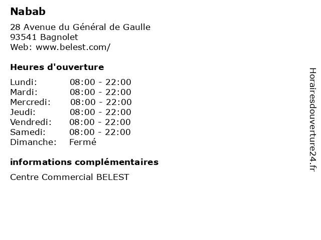 2 Nabab (Distance: 2,37 km) 28 Avenue du General de Gaulle, 93541 Bagnolet accesoires, cafe, chausseres, enfants, homme, mode femmes, nabab, restaurant 3 Nabab Kebab (Distance: 4,72 km) 4 Place de l'Europe, 94220 Charenton-le-Pont bercy, centre, commercial, kebab, kebabs, nabab, rapide, restauration 4 Nabab Kebab (Distance: 4,93 km) 72 Rue Rambuteau, 75011 Paris kebab, menu, nabab, plaisir, plats, restaurants 5 Nabab Kebab (Distance: 7,06 km) 39 Avenue de Clichy, 75017 Paris kebab, kebabs, nabab, rapide, restauration 6 Nabab Kebab - Takos King (Distance: 9,45 km) 5 Boulevard Gouvion St Cyr, 75017 Paris kebab, kebabs, king, nabab, rapide, restauration, takos |