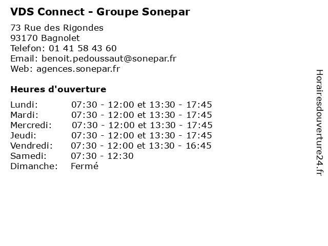 | Lundi | 07:30-12:00 et 13:30-17:45 |