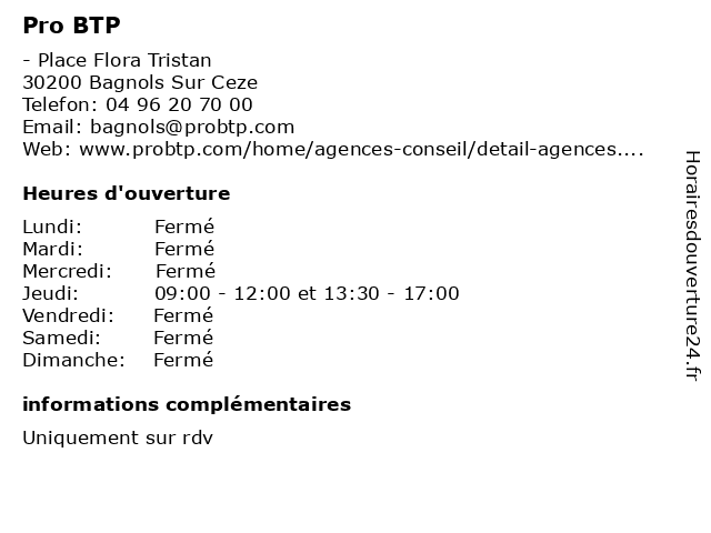 1 Pro BTP (Distance: 19,32 km) - avenue Jean Moulin, 84500 Bollene auto, btp, epargne, habitation, prevoyance, pro, retraite, sante, vacances 2 Espace Aubade - Comptoir Pro (Distance: 0,52 km) 17 Avenue Eugène Thome, 30200 Bagnols-sur-Cèze aménagement, aubade, comptoir, equipement, espace, magasin, mobilier, pro 4 Averum Expertises - Diagnostics Immobiliers - Réseau d.PRO (Distance: 16,85 km) 2 Avenue Pasteur, 84500 Bollène averum, d.pro, diagnostics, expertises, immobiliers, réseau 5 Harmonie Mutuelle (Distance: 0,31 km) Place Bertin Boissin, 30200 Bagnols-sur-Cèze assurance de prêt immobilier, devis mutuelle santé, garantie accident de la vie, harmonie, mutuelle, mutuelle santé, mutuelle tns, prévention santé, prévoyance arrêt de travail, prévoyance hospitalisation, prévoyance santé, épargne retraite 6 Harmonie Mutuelle (Distance: 0,36 km) - Place Bertin Boissin, 30200 Bagnols-sur-Cèze agence, complementaire, harmonie, mutuelle, prevoyance, santé |