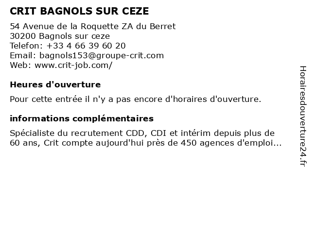 | Appeler CRIT BAGNOLS SUR CEZE | |