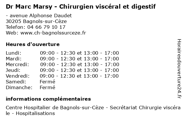 | Jeudi | 09:00-12:30 et 13:00-17:00 |