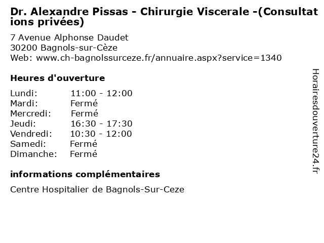 1 Dr. Alexandre Pissas - Chirurgie Viscerale -(Consultations publiques) (Distance: 0,00 km) 7 Avenue Alphonse Daudet, 30200 Bagnols-sur-Cèze alexandre, chirurgie, consultations, docteur, dr., medecins, pissas, publiques, sante, viscerale 2 Dr. Alexandre Pissas - Lymphoedeme (Distance: 0,00 km) 7 Avenue Alphonse Daudet, 30200 Bagnols-sur-Cèze alexandre, docteur, dr., lymphoedeme, medecins, pissas, sante 3 Dr. Alexandre Pissas - Lymphoedeme -(Privees) (Distance: 0,00 km) 7 Avenue Alphonse Daudet, 30200 Bagnols-sur-Cèze alexandre, docteur, dr., lymphoedeme, medecins, pissas, privees, sante 4 Dr. Olivier Abrieu - Cardiologie -(Consultations Consultations privées ) (Distance: 0,00 km) 7 Avenue Alphonse Daudet, 30200 Bagnols-sur-Cèze abrieu, cardiologie, consultations, docteur, dr., medecins, olivier, privées, sante 5 Dr. Gerard Allard Latour - Cardiologie -(Consultations privées) (Distance: 0,00 km) 7 Avenue Alphonse Daudet, 30200 Bagnols-sur-Cèze allard, cardiologie, consultations, docteur, dr., gerard, latour, medecins, privées, sante 6 Dr. Olivier Boutet - Endoscopies Digestives -(Gastro-entérologie-Consultations privées) (Distance: 0,00 km) 7 Avenue Alphonse Daudet, 30200 Bagnols-sur-Cèze boutet, consultations, digestives, docteur, dr., endoscopies, entérologie, gastro, medecins, olivier, privées, sante |