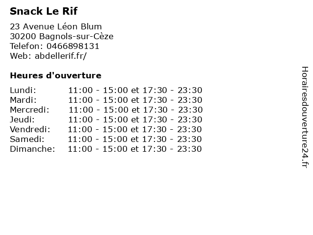 | Mardi | 11:00-15:00 et 17:30-23:30 |