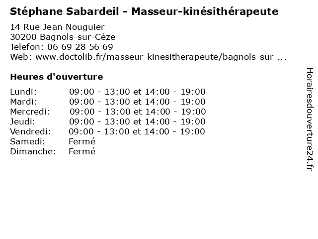 1 Stéphane Sabardeil - Masseur-kinésithérapeute (Distance: 0,27 km) 1 Impasse des Cigales, 30200 Bagnols-sur-Cèze kiné, kinésithérapeute, masseur, rééducation, sabardeil, soin, stephane, stéphane 2 Stéphane Plaza Immobilier (Distance: 0,86 km) 23 boulevard Théodore Lacombe, 30200 Bagnols-sur-Cèze agence, gestion, immobilier, location, plaza, stéphane, transaction, vente 3 Dr Stéphane Tkatchouk - Médecin généraliste (Distance: 0,92 km) - avenue Alphonse Daudet, 30205 Bagnols-sur-Cèze dr, généraliste, médecin, palliattif, sante, soin, stéphane, support, tkatchouk, urgences 5 Stéphane Plaza Immobilier (Distance: 15,81 km) 11 Rue de la République, 84100 Orange agence, gestion, immobilier, location, plaza, stéphane, transaction, vente 6 Dr Stéphane Benezra - Médecin généraliste (Distance: 16,92 km) - Avenue de Lavoisier, 84100 Orange benezra, consultation, docteur, dr, généraliste, med, médecin, stephane, stéphane, traitement |
