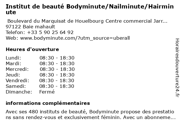 Termes de recherche pour Institut de beauté Bodyminute/Nailminute/Hairminute:de, beauté, institut, bodyminute/nailminute/hairminute |