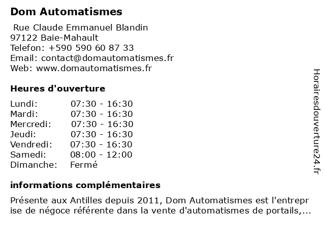 1 Serva Dom Guadeloupe (Distance: 0,34 km) 100 Rue Hyacinthe Bastaraud, 97122 Baie-Mahault dom, guadeloupe, serva 2 SACEM - DT DOM - Délégation Pointe a Pitre (Distance: 1,94 km) ZI de Jarry - Voie Verte Imm les Tropiques, 97122 Baie mahault dom, dt, délégation, pitre, pointe, sacem 3 Outils Dom (Distance: 2,65 km) . ZAC de La Grande Voie, 97122 Baie-Mahault bricolage, dom, matériaux, outillage, outils 5 Free Dom (Distance: 5,40 km) 401 Résidence Paul Moueza, 97110 Pointe-À-Pitre aide, dom, domicile, enfant, entretien, free, garde, jardinage, ménage, nettoyage, proprete, repassage 6 DOM TOM SÉCURITÉ Guadeloupe (Distance: 18,51 km) 10 Rue Louis Delgres, 97131 PETIT CANAL alarme incendie guadeloupe, alarme intrusion guadeloupe, dom, entreprise de sécurité guadeloupe, extincteurs guadeloupe, gardiennage guadeloupe, guadeloupe, installation camera guadeloupe, maintenance alarmes guadeloupe, sÉcuritÉ, tom, télésurveillance guadeloupe, video surveillance guadeloupe, vidéosurveillance guadeloupe |