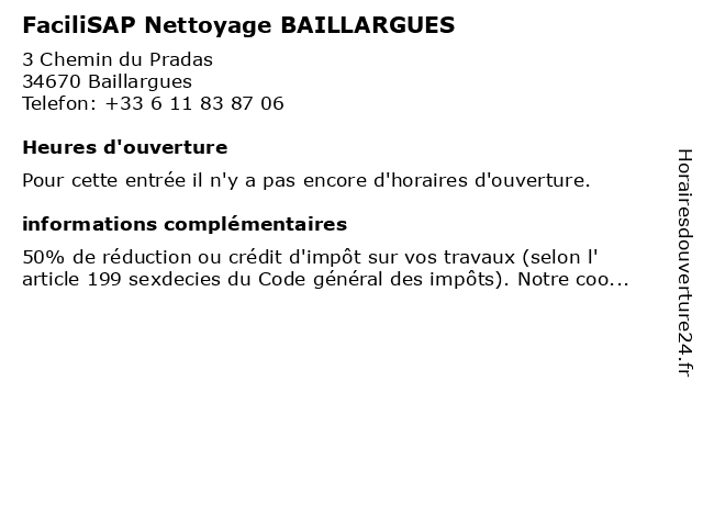 | Appeler FaciliSAP Nettoyage BAILLARGUES | |