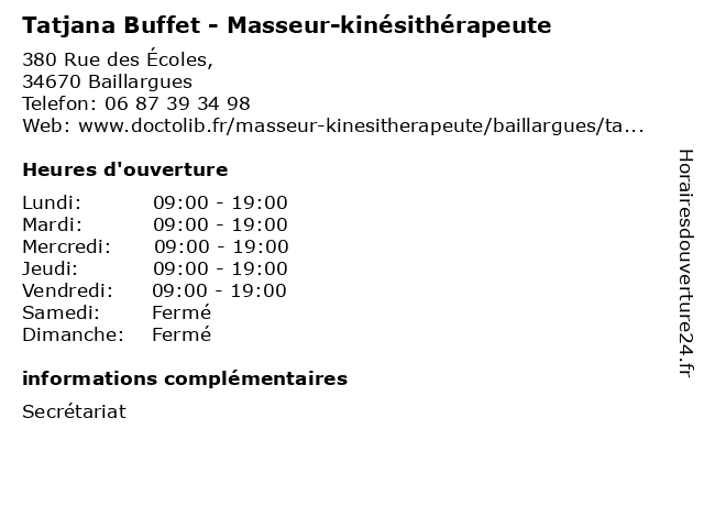 1 O 'Buffet (Distance: 9,59 km) 1049 Rue Hélène Boucher, 34130 Mauguio 'buffet, buffet, cuisine, restaurants, restauration 3 Carrefour (Distance: 4,15 km) - route nationale 113, 34920 Le Crès buffet, carrefour, plats, restauration, traiteur 4 FLUNCH MONTPELLIER PEROLS (Distance: 10,88 km) Route de Carnon, 34470 Pérols ambiance conviviale, buffet à volonté, dîner en groupe, flunch, flunch anniveraire, frites à volonté, menu enfant, menu flunch, montpellier, perols, petit prix, repas variés, restaurant familial, restaurant moules, restaurant pas cher 5 LES BUFFETS DE LA MER (Distance: 12,93 km) 197 Allée de l'Épi, 34280 La Grande-Motte bar à cocktail, bar à huitres, bar à sushis, buffet à volonté, buffets, de, formule midi, la, les, mer, plateau de fruits de mer, poissons frais, restaurant bord de mer, restaurant de fruits de mer, restaurant fruits de mer à volonté 6 Grand Buffet n 1 (Distance: 32,56 km) 140 Rue Du Pere Brottier, 30900 Nimes buffet, chen, grand, restaurants, wang |