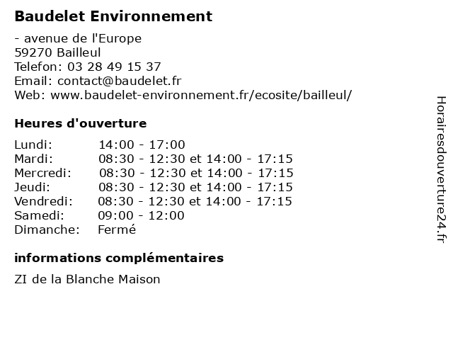 | Mercredi | 08:30-12:30 et 14:00-17:15 |