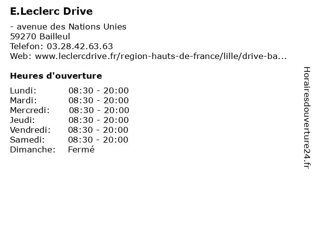 1 E.Leclerc Drive (Distance: 8,52 km) - ZI Les Trois Tilleuls, 59850 Nieppe alimentation, drive, e.leclerc, supermarché 2 E.Leclerc Drive (Distance: 13,85 km) 103 rue du Millieu, 59190 Hazebrouck courses, drive, e.leclerc, en ligne 3 E.Leclerc Drive (Distance: 19,08 km) 109 rue des Fusillés, 59160 Lomme alimentation, drive, e.leclerc, supermarché 4 E.Leclerc Location (Distance: 0,00 km) - Avenue des Nations Unies, 59270 Bailleul agence de location de camions, de, e.leclerc, lieu de covoiturage, location, véhicules 5 E.Leclerc Station Service (Distance: 0,00 km) - Avenue des Nations Unies, 59270 Bailleul e.leclerc, fournisseur de gaz, fournisseur de gaz propane, service, station 6 E.Leclerc Borne (Distance: 0,13 km) . Avenue De L'Europe, 59270 Bailleul borne, e.leclerc, service, services, services à la personne |