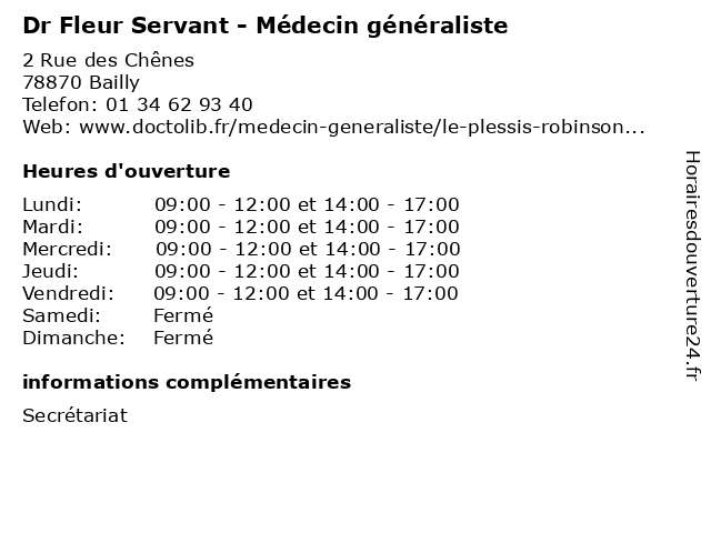 | Lundi | 09:00-12:00 et 14:00-17:00 |