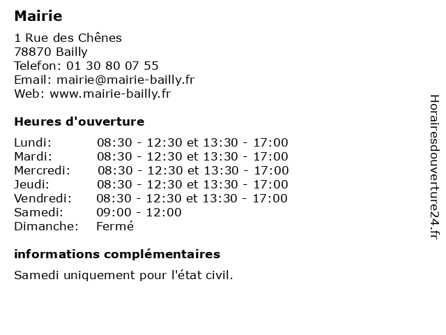 | Mercredi | 08:30-12:30 et 13:30-17:00 |