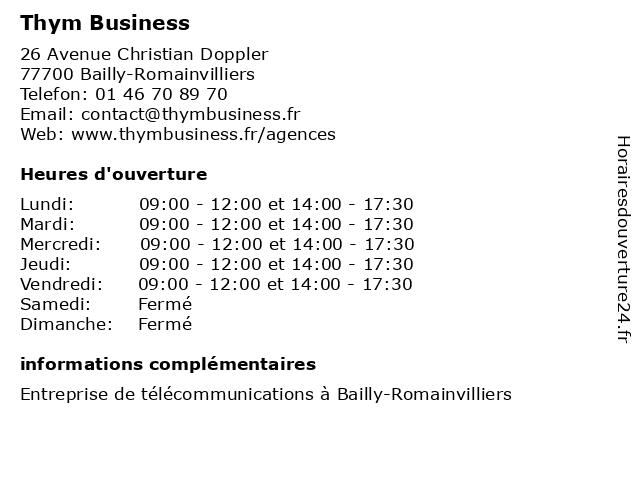 | Jeudi | 09:00-12:00 et 14:00-17:30 |