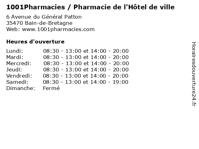 | Mardi | 08:30-13:00 et 14:00-20:00 |