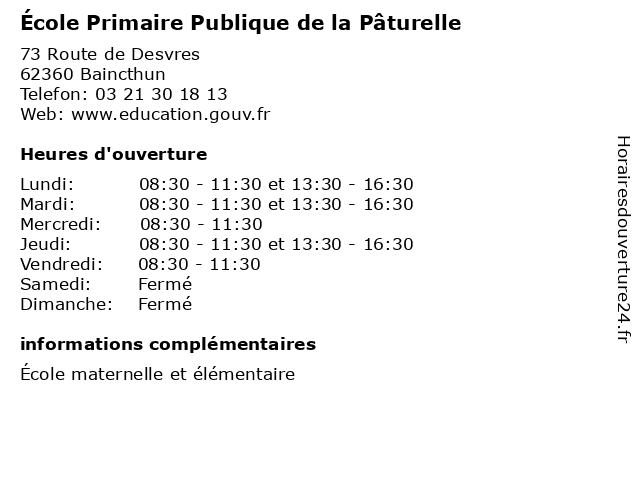 | Mardi | 08:30-11:30 et 13:30-16:30 |