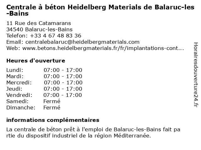 2 CEMEX Matériaux, unité de production béton de Frontignan (Distance: 5,23 km) Route Départementale 2, 34110 Frontignan béton, cemex, de, fournisseur de matériel pour le béton, frontignan, matériaux, production, unité 3 Centrale à béton Heidelberg Materials de Saint-Jean-de-Védas (Distance: 17,83 km) Rue Saint Exupery, 34430 Saint-Jean-de-Védas béton, centrale, de, heidelberg, jean, materials, saint, védas 4 Région Sud Est - Heidelberg Materials (Distance: 19,39 km) 50 Rue Théophraste Renaudot, 34430 Saint-Jean-de-Védas est, heidelberg, materials, région, sud 5 Multi Travaux Terrassement Réseaux VRD Dallages Béton (Distance: 19,65 km) 480 Route De Sète, 34430 Saint-Jean-de-Védas architecte-paysagiste, béton, dallages, détection d'amiante, entrepreneur en maçonnerie, entreprise générale de construction, fournisseur de béton, multi, piscine publique, réseaux, service de formation en informatique, terrassement, travaux, vrd 6 École élémentaire publique Heidelberg (Distance: 22,48 km) . Rue Charles Bonaparte, 34080 Montpellier cours, education, heidelberg, publique, services, école, élémentaire |