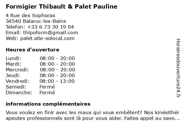 1 Pauline Burnel - Ostéopathe (Distance: 4,22 km) 37 Quai de Bosc, 34200 Sète burnel, ostéo, ostéopathe, ostéopathes, pauline, soins 2 Dr Pauline Abraham - Pédiatre (Distance: 4,94 km) - Boulevard Camille Blanc, 34200 Sète abraham, consultation, docteur, dr, med, médecin, médecine, pauline, pédiatre, traitement 3 Pauline Alborghetti - Ostéopathe (Distance: 7,74 km) 120 Chemin des Romains, 34560 Montbazin alborghetti, ostéo, ostéopathe, ostéopathes, pauline, soins 4 Dr Pauline Bourgeon - Médecin généraliste (Distance: 7,76 km) 32 Avenue de Montpellier, 34140 Mèze bourgeon, consultation, docteur, dr, généraliste, med, médecin, pauline, traitement 5 6 Pauline Parna Jugla - Sage-femme (Distance: 17,16 km) 11 Boulevard Lamartine, 34340 Marseillan femme, jugla, parna, pauline, sage, sagefemme, sante |