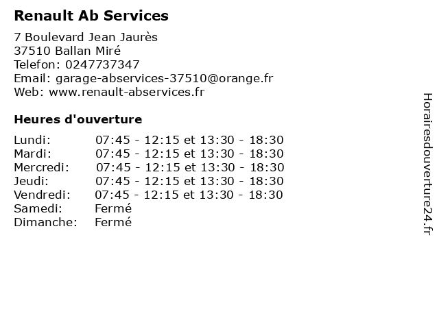 | Lundi | 07:45-12:15 et 13:30-18:30 |