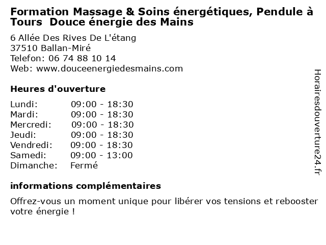 Termes de recherche pour Formation Massage & Soins énergétiques, Pendule à Tours Douce énergie des Mains:tours, des, énergie, salon de beauté, soins, formation, douce, massage, mains, pendule, energetiques, médecine alternative, numérologue, école de massage, centre scolaire pour adultes, massothérapie, station thermale, centre de spiritisme |