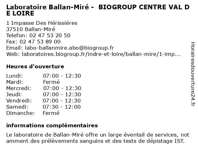Termes de recherche pour Laboratoire Ballan-Miré - BIOGROUP CENTRE VAL DE LOIRE:val, de, loire, laboratoire, centre, miré, ballan, biogroup, dépistages, laboratoire de diagnostic |