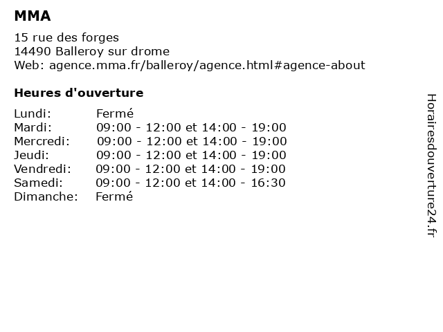 | Mardi | 09:00-12:00 et 14:00-19:00 |
