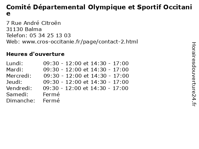 | Mercredi | 09:30-12:00 et 14:30-17:00 |