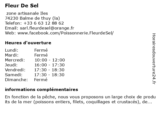 1 Fleur De Sel (Distance: 3,11 km) Rue Des Vernaies, 74230 Thones boucheries, fleur, poissonneries, sel 2 Fleur de Sel (Distance: 8,40 km) 5 Avenue du Pré Félin, 74940 Annecy-le-Vieux de, fleur, hoffmann, restaurants, sel 4 Follement Fleur (Distance: 12,23 km) 11 Avenue de la République, 74960 Cran-Gevrier campo, dei, détail, fiori, fleur, follement, jardinage, magasins, pépinières, vente 5 Le Grain De Sel (Distance: 12,79 km) Bocquet Catherine, 74600 Annecy barithel, bocquet, catherine, grain, restaurants, sel 6 A Fleur De Thau (Distance: 18,99 km) Fleur Thau Hle Centrales Etaux 190 19, 11100 Narbonne boucheries, fleur, lopez, poissonneries, thau |