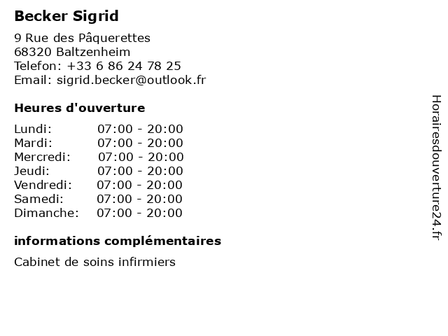 2 Dr Jens Becker - Médecin généraliste (Distance: 19,13 km) 1 Grand-Rue, 68420 Eguisheim becker, consultation, docteur, dr, généraliste, jens, med, médecin, médecine, publiques, secrétariat, traitement 3 Domaine Jean Becker (Distance: 19,48 km) 2 Route d'Ostheim, 68340 Zellenberg alsace, becker, bio, domaine, jean, vins, zellenberg 4 Garage Premier - Garage Becker Benjamin (Distance: 20,36 km) 1 Rue de la Gare, 68590 Saint-Hippolyte atelier, automobile, becker, benjamin, carrosserie, garage, premier, reparation, revision 5 Garage Becker Benjamin - 1,2,3 AutoService (Distance: 20,36 km) 1 Rue de la Gare, 68590 Saint-Hippolyte autoservice, becker, benjamin, garage 6 Sophie Becker - Sage-femme (Distance: 35,06 km) 5 Rue de Cernay, 68840 Pulversheim becker, femme, sage, sagefemme, sante, sophie |
