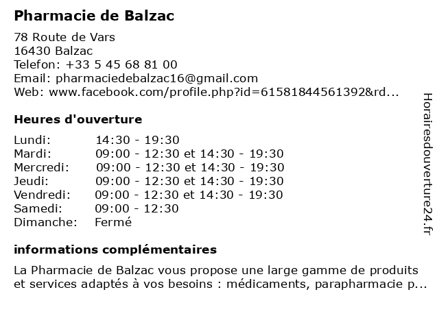 Termes de recherche pour Pharmacie de Balzac:de, pharmacie, balzac |