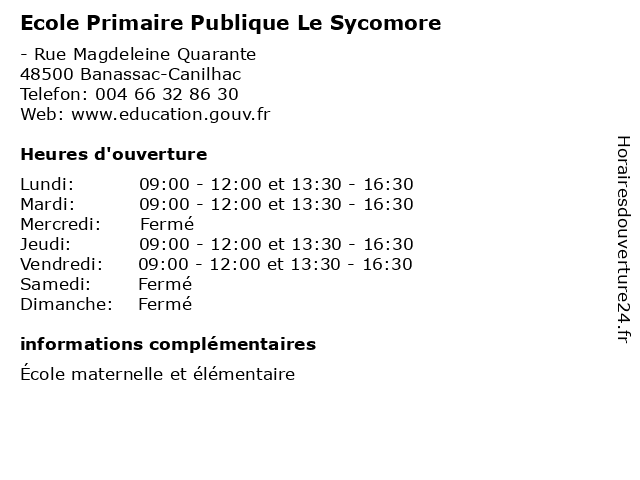 | Dimanche | Fermé |