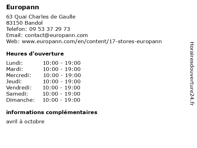 1 Europann (Distance: 49,50 km) 14 avenue du Général de Gaulle, 83980 Le Lavandou accessoires, boutique, europann, habillement, mode, vêtements 2 Bebop et Loola (Distance: 0,00 km) 53 Quai Charles de Gaulle, 83150 Bandol accessoire, bebop, boutique, chaussure, enfant, et, loola, mode 3 Comptoir du Sud (Distance: 0,08 km) 71 Quai Charles de Gaulle, 83150 Bandol accessoires, chaussures, comptoir, du, habillement, mode, pret à porter, sud, vêtements 4 Little Marcel (Distance: 0,23 km) 63 Quai Charles de Gaulle, 83150 Bandol boutique, little, marcel, mode, vetements 5 Rien Ne Va Plus (Opticien) (Distance: 0,24 km) 2 Rue de la République, 83150 Bandol de la mode, lentilles de contact, lunettes, ne, opticien, optique, plus, rien, va 6 Rien Ne Va Plus (Opticien, Juillet et Août) (Distance: 0,24 km) 2 Rue de la République, 83150 Bandol août, de la mode, et, juillet, lentilles de contact, lunettes, ne, opticien, optique, plus, rien, va |