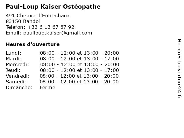 | Vendredi | 08:00-12:00 et 13:00-20:00 |