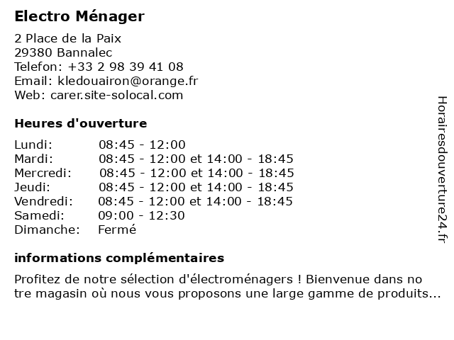 | Mardi | 08:45-12:00 et 14:00-18:45 |
