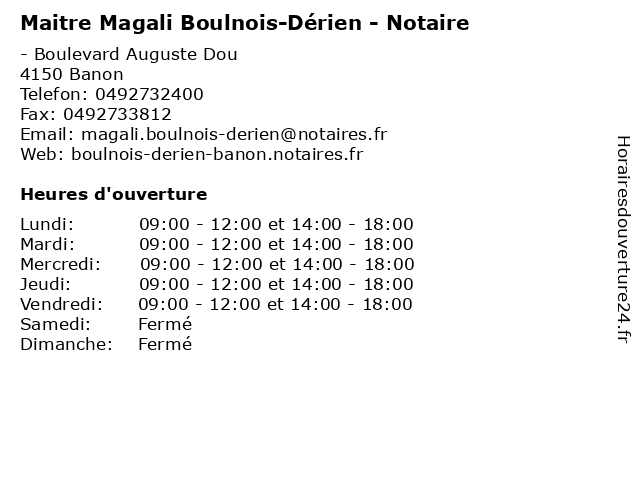 | Lundi | 09:00-12:00 et 14:00-18:00 |