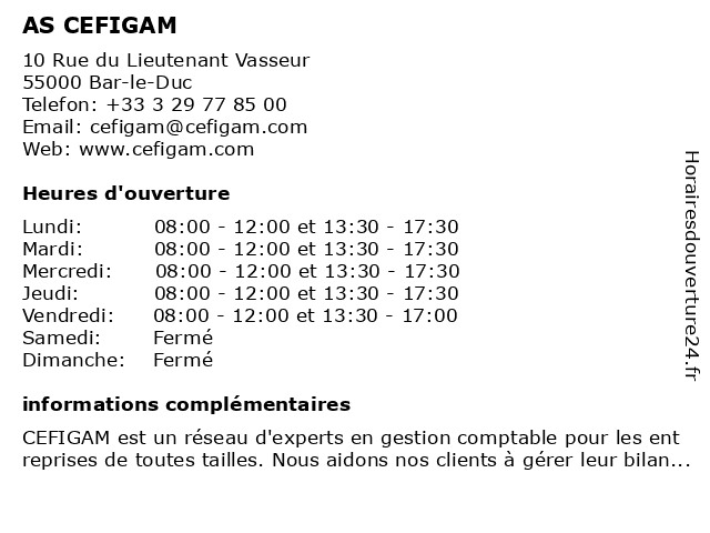 | Lundi | 08:00-12:00 et 13:30-17:30 |