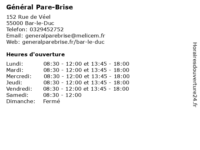 | Lundi | 08:30-12:00 et 13:45-18:00 |