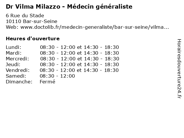 | Lundi | 08:30-12:00 et 14:30-18:30 |
