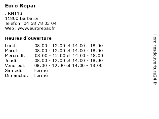 | Lundi | 08:00-12:00 et 14:00-18:00 |