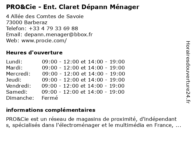 | Samedi | 09:00-12:00 et 14:00-19:00 |