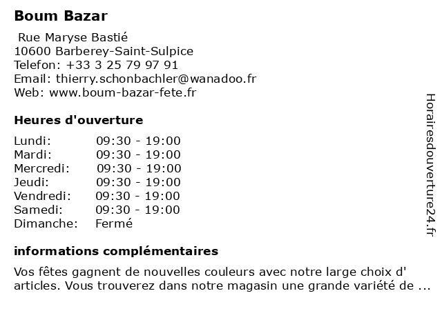 | Samedi | 09:30-19:00 |