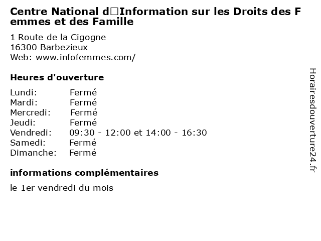 | Samedi | Fermé |