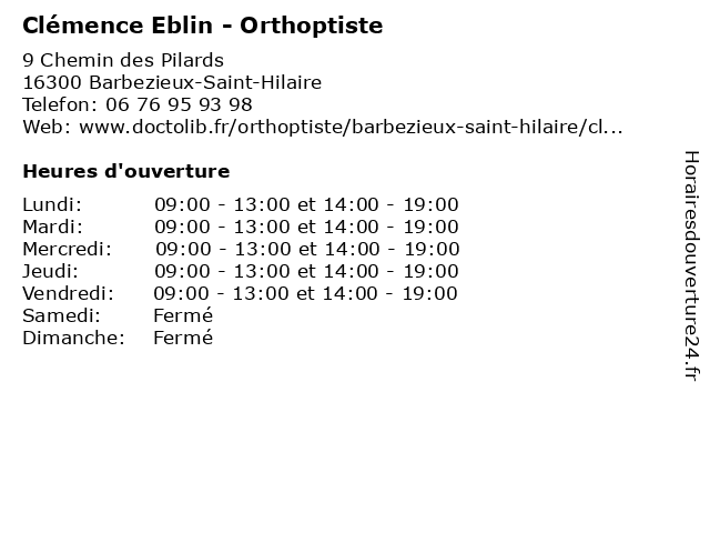 | Lundi | 09:00-13:00 et 14:00-19:00 |