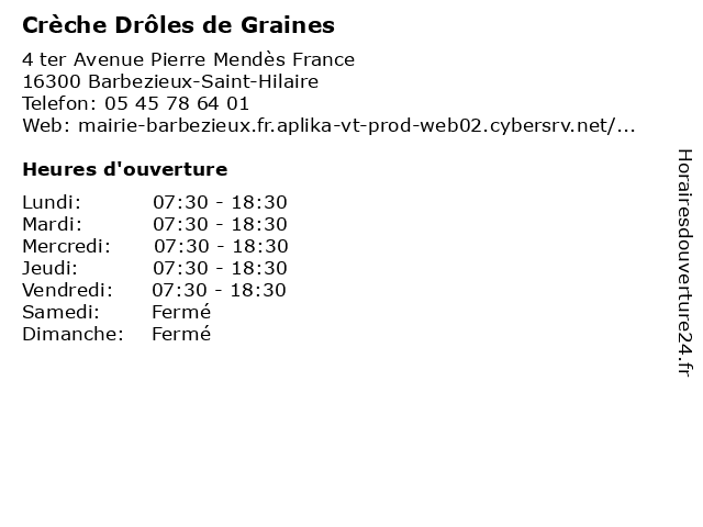 | Lundi | 07:30-18:30 |