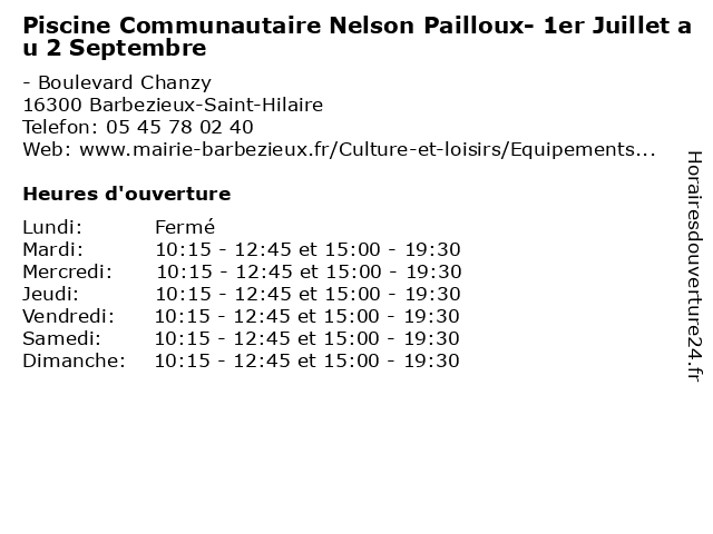 Termes de recherche pour Piscine Communautaire Nelson Pailloux- 1er Juillet au 2 Septembre:au, loisir, 1er, piscine, juillet, septembre, pailloux, nelson, communautaire, exercice, baignade, extérieure |