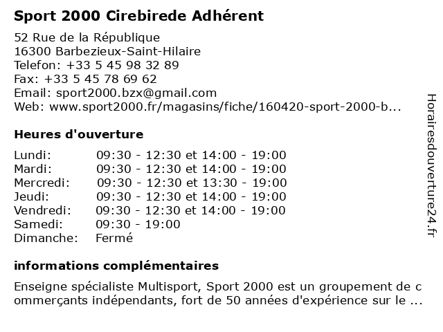 | Mercredi | 09:30-12:30 et 13:30-19:00 |