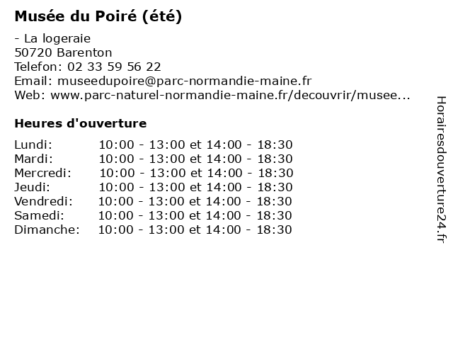 | Dimanche | 10:00-13:00 et 14:00-18:30 |