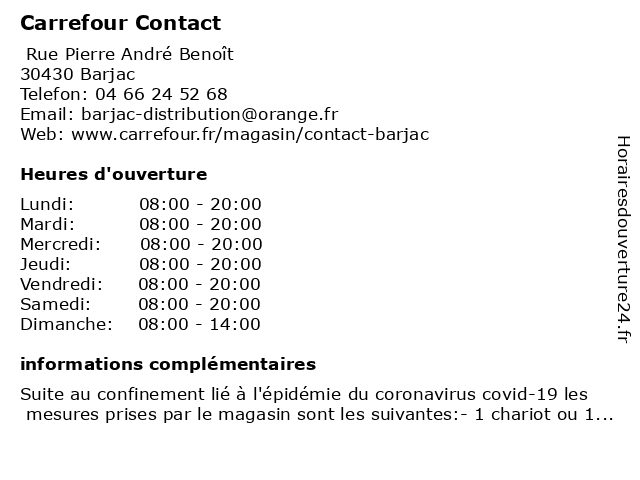 1 Carrefour Contact (Distance: 0,15 km) - Quartier Reboulasse, 30430 Barjac alimentaire, alimentation, carrefour, contact, courses, distributeur, hypermarché, supermarché, épicerie 2 Carrefour Station Service (Distance: 0,15 km) - Quartier Reboulasse, 30430 Barjac carburant, carrefour, essences, gazole, service, services, station 3 Carrefour Station Service (Distance: 12,19 km) - Route d'Uzès, 30500 Saint-Ambroix carburant, carrefour, essences, gazole, service, services, station 4 Carrefour Drive (Distance: 13,00 km) 1004 Route D'Uzes, 30500 Saint Ambroix carrefour, drive, hypermarche, marche, market 5 Carrefour Location (Distance: 13,03 km) 1004 route d'Uzès, 30500 Saint-Ambroix carrefour, location, trajet, utilitaire, véhicule 6 Carrefour Market (Distance: 13,04 km) 1004 Route d'Uzès, 30500 Saint-Ambroix alimentation, carrefour, magasin discount, market, supermarché |