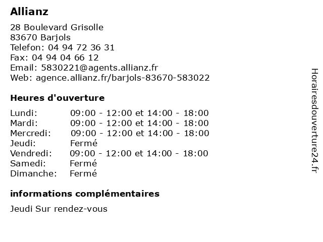 1 Allianz (Distance: 12,15 km) 4 Cours Gambetta, 83570 Cotignac allianz, assurance prêt, assurances, services 2 Allianz (Distance: 16,57 km) 10 Avenue Albert 1er, 83470 St Maximin La Ste Baume allianz, bank, finanzen, vermögen 5 Allianz (Distance: 19,74 km) 620 route de Draguignan, 83690 Salernes agence, allianz, assurances, henri, marc, merle, var 6 Allianz - Assurances Martin (Distance: 17,22 km) 251 Avenue Saint Jean, 83170 Brignoles agence, allianz, assurance, assurances, auto, habitation, martin, prévoyance, santé |